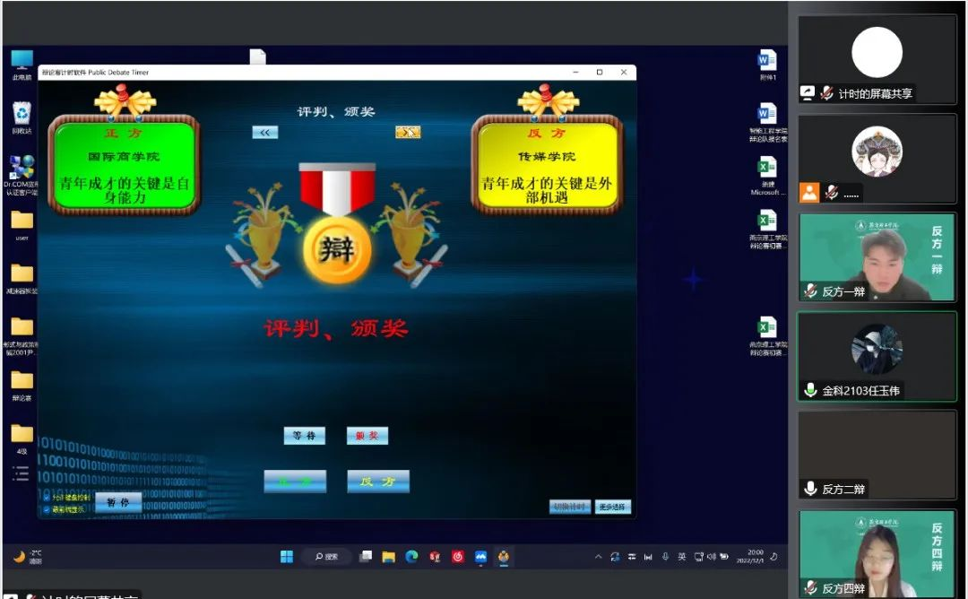 为深入贯彻二十大精神,提高学生思辨能力,弘扬辩论精神,燕京理工学院于12月1日晚7点以线上腾讯会议的形式,举行“学习二十大,思辩展风华”辩论赛。