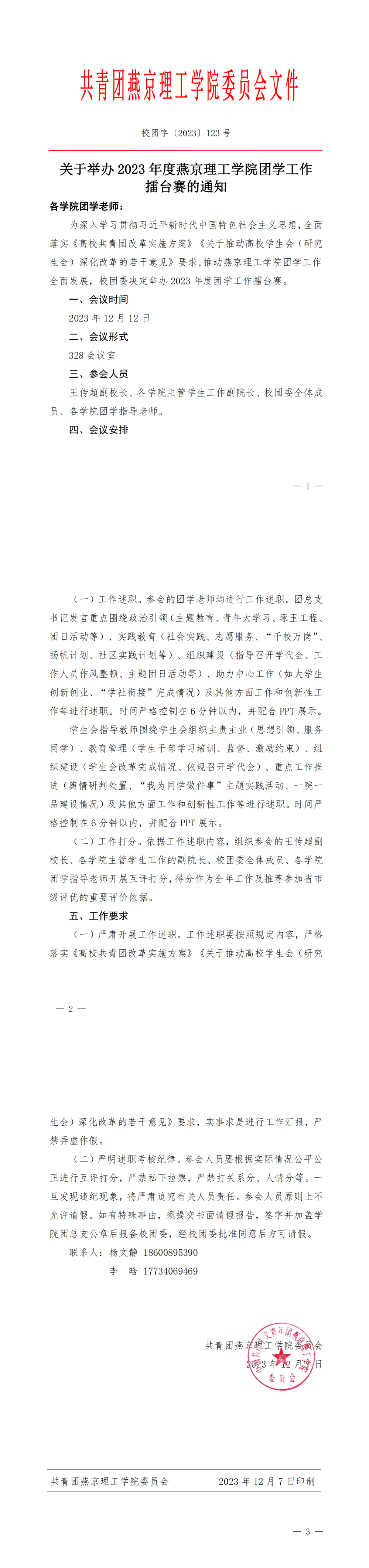 关于举办2023年度燕京理工学院团学工作擂台赛的通知