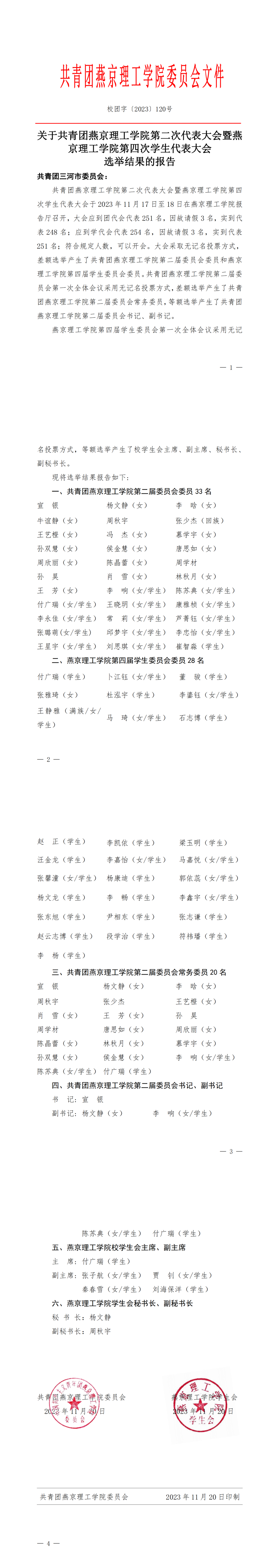 关于共青团燕京理工学院第二次代表大会暨燕京理工学院第四次学生代表大会选举结果的报告(三河市团委)