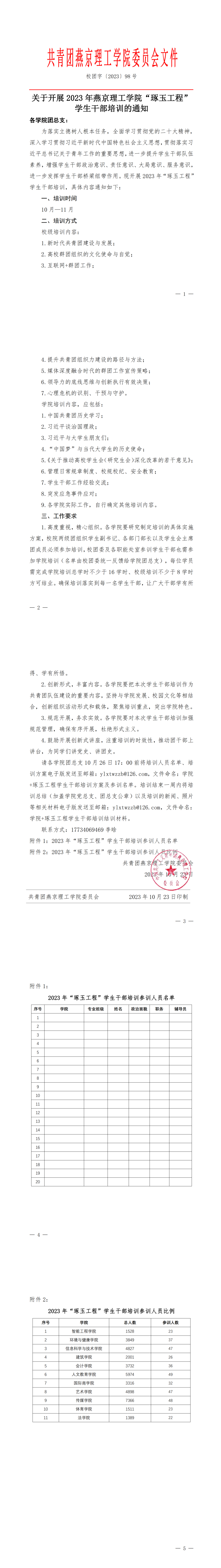 关于开展2023年燕京理工学院“琢玉工程”学生干部培训的通知