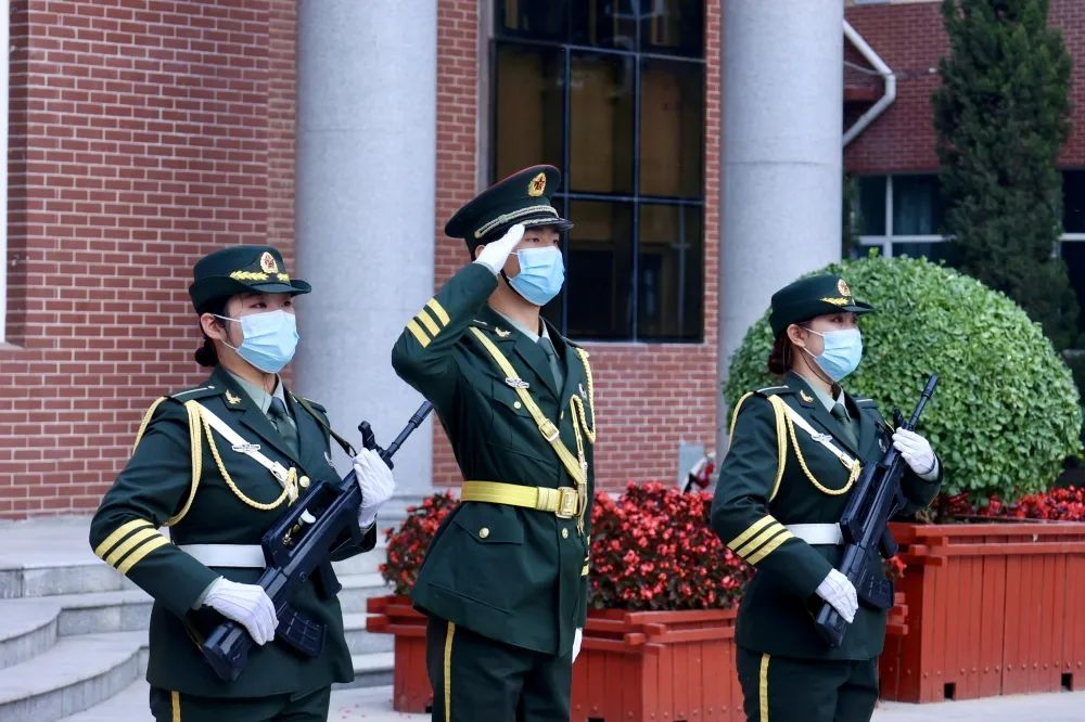 为庆祝中华人民共和国成立73周年,10月1日清晨,燕京理工学院在B楼前隆重举行升旗仪式。500余名学生代表参加了此次活动。
