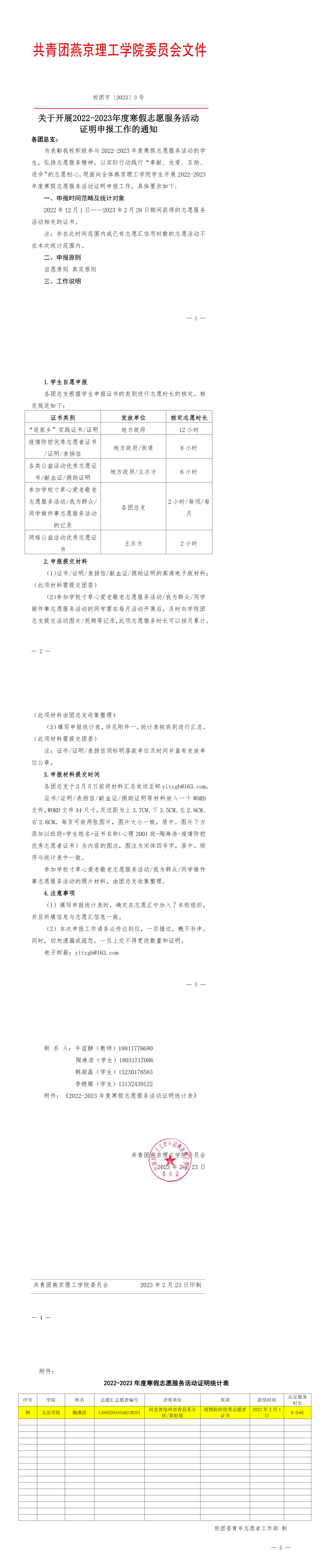 关于开展2022-2023年度寒假志愿服务活动证明申报工作的通知