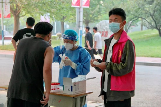 到岗执勤,太阳未出、兵马先行,志愿者们披星戴月,为大家布置核酸检测场地,身上的红色志愿服,不仅是责任,更是担当。