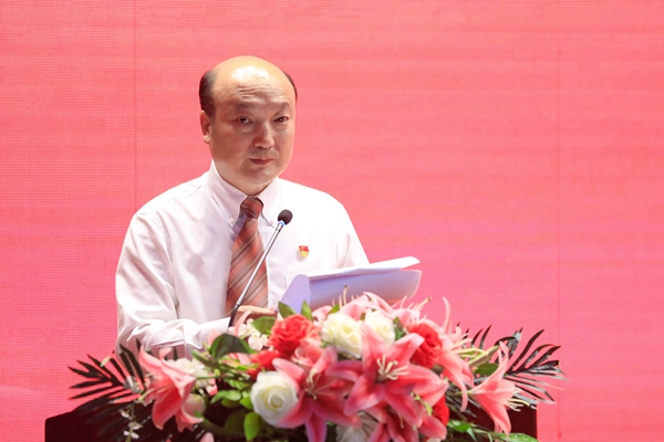 党委书记朱代春发表“从党的百年奋斗历程中汲取智慧力量 促进学校内涵式高质量发展”主题讲话。他首先代表学校党委,向受到表彰的优秀共产党员、优秀党务工作者和先进基层党组织表示热烈的祝贺!向学校各级党组织和大会工作人员的辛勤付出表示由衷的感谢!
