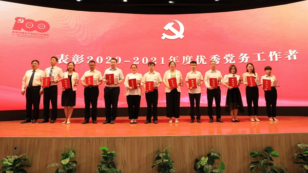 党委副书记、副校长王传超宣读了《2020-2021年度优秀共产党员、优秀党务工作者和先进基层党组织表彰决定》,对3个先进党总支、9个先进党支部、12名优秀党务工作者和46名优秀共产党员进行了表彰。党委书记朱代春,校长杨庚宇,党委副书记、副校长王传超,副校长宋伟,校长助理吴敏为获奖个人和先进集体颁奖。