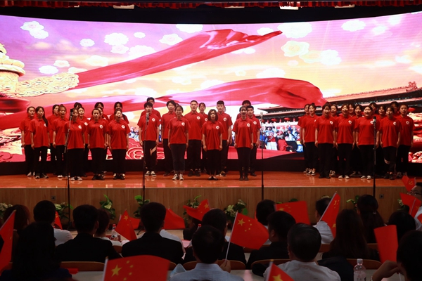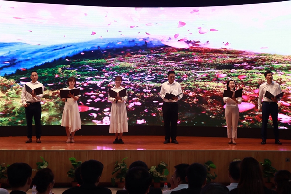 表彰大会后,“七一”文艺汇演拉开帷幕。师生通过《红船,从南湖起航》《四渡赤水出奇兵》《我为祖国献石油》《走向复兴》《没有共产党就没有新中国》等文艺作品,以及师生党员手抄党章10米长卷,歌颂党的丰功伟绩,抒发对党的深情厚意,热烈庆祝中国共产党成立100周年。