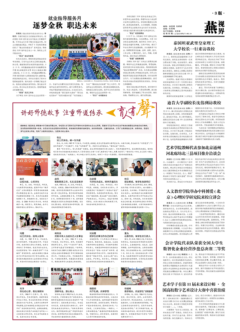 本网讯(继续教育学院 宣传部 焦杨扬 石芮源 阎相熹)3月23日,由继续教育学院主办的“我和燕理有个约定”征文活动表彰大会举办。党委副书记、副校长王传超,副校长吴汶燕,各二级学院主…