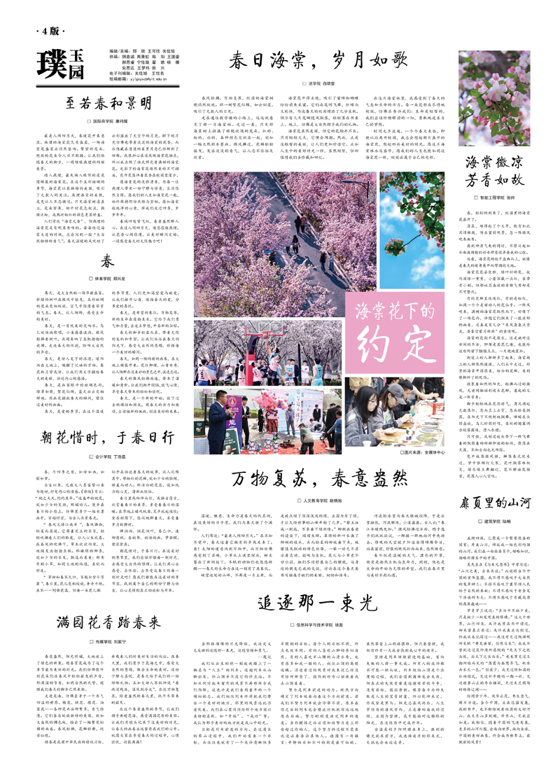 本网讯(党委宣传部 校办 李家曾 付盛通 任怀民)胸怀千秋伟业,恰是百年风华。4月10日,在建党百年之际,在海棠盛放时刻,燕京理工学院特别策划举办庆祝中国共产党成立100周年系列活动之“风华百年春正盛”海…