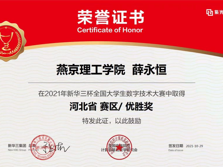 在学习之余,他积极参加校内外各种专业领域的比赛30余次,获“挑战杯”河北省大学生课外学术科技作品竞赛二等奖,获新华三杯优胜奖,获数学建模竞赛优秀奖等6项荣誉。在比赛过程中练就了他吃苦耐劳的精神,个人能力得到了全面提升。