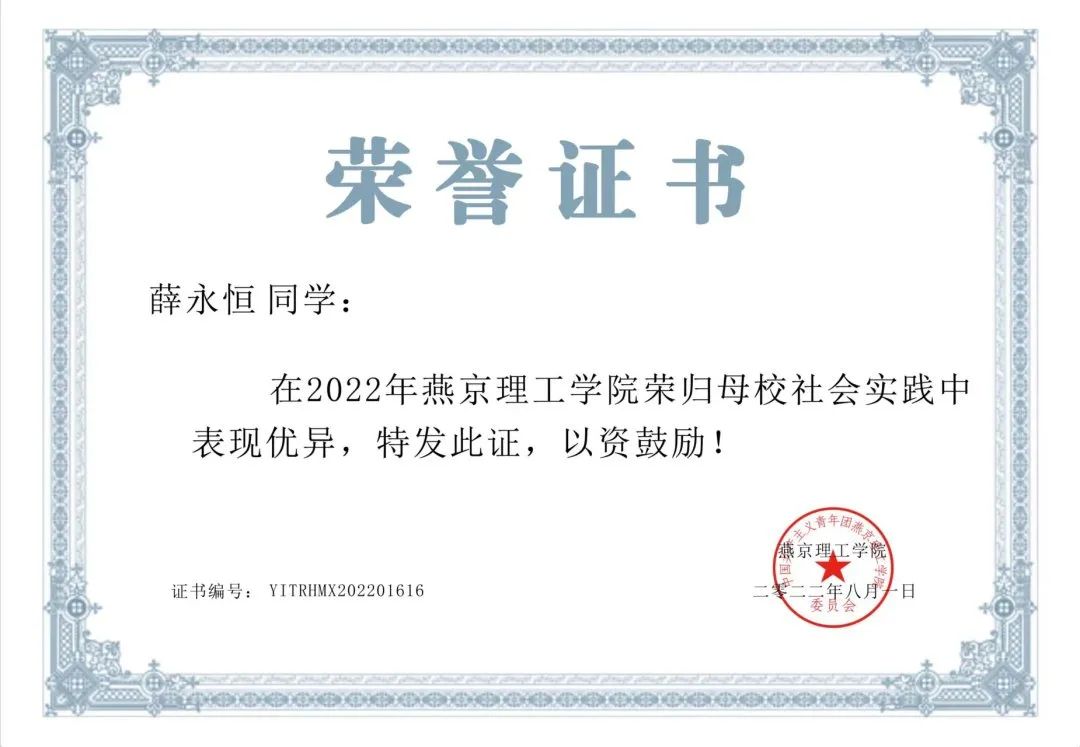 薛永恒,男,共青团员,信息科学与技术学院计算机科学与技术专业,担任计科2001班班长。性格沉稳,待人谦逊,思想积极进取,学习积极向上,工作认真负责,生活丰富多彩,累计获省级荣誉6项,校级荣誉17项。连续获国家励志奖学金2次,校奖学金5次,获河北省“三好学生”“十佳学习标兵”“优秀学生干部”“优秀大学生志愿者”等荣誉,积极投身竞赛实践获“挑战杯”河北省大学生课外学术科技作品竞赛二等奖,积极参与核酸检测和学校迎新志愿服务,志愿时长累计142.2小时。