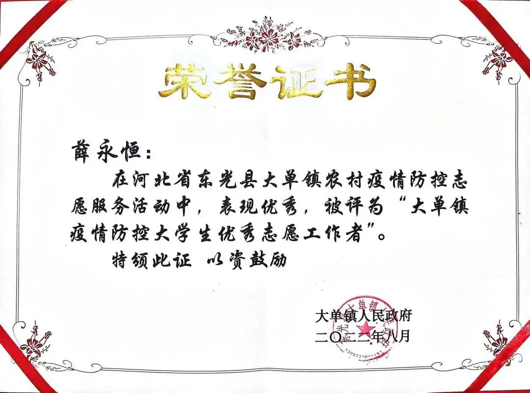 回到家中他还积极参与当地的疫情防控志愿服务及政务宣传工作,工作认真负责,得到了当地村民及村委会的一致认可。通过社会实践他收获了能够实现价值的充实感,在锻炼中成长,在磨砺中蜕变不断丰富的实践经历让他更坚定了为社会进步而奉献自己的决心。
