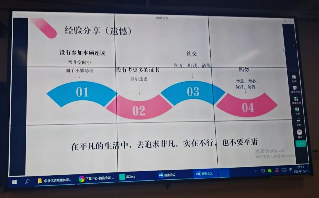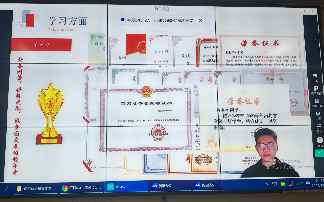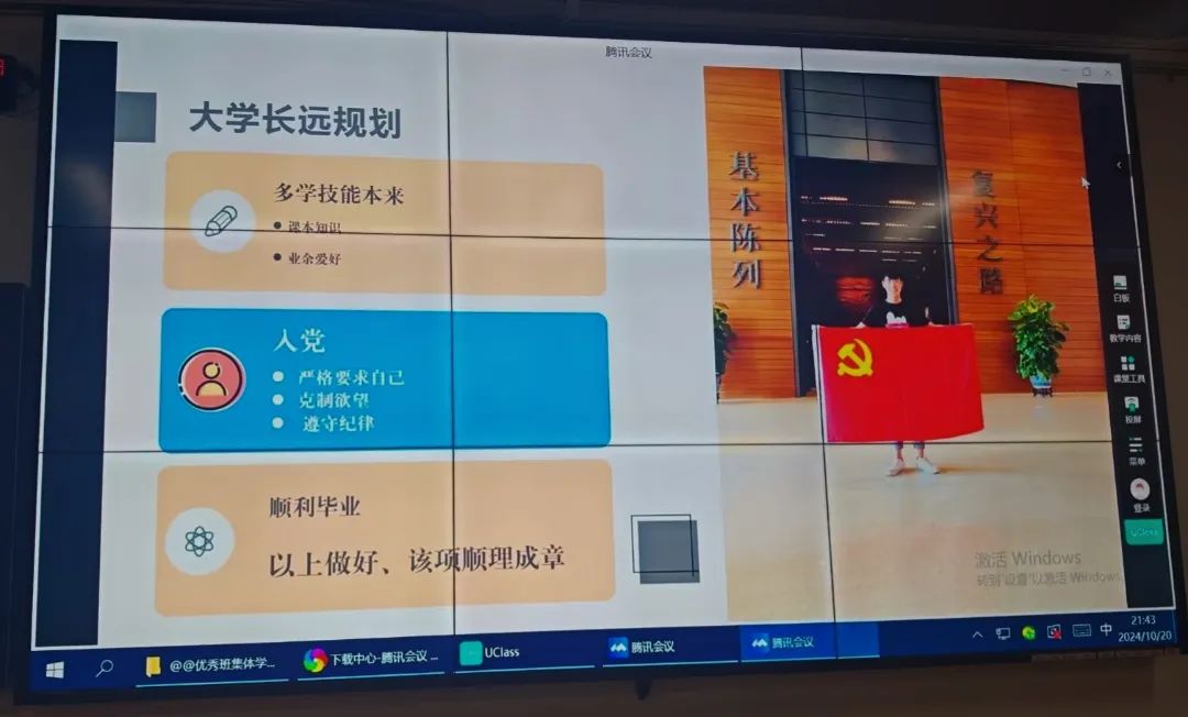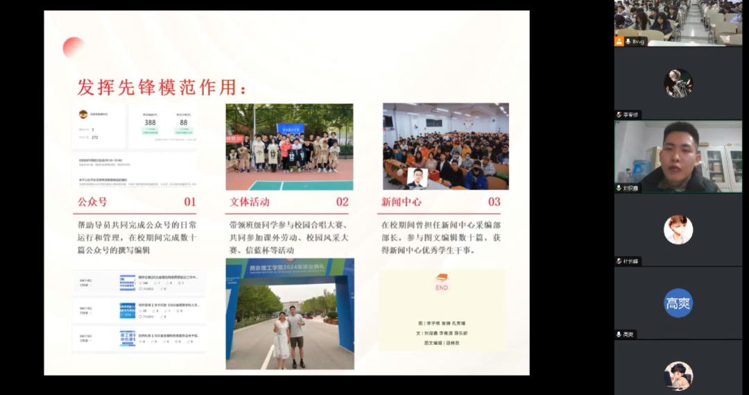 考编上岸的计科2008刘俣鑫学长分享经验。刘俣鑫学长分享他从初期入党积极分子到正式入党的全过程,他的初心始终未变,坚持不懈的毅力,最终帮助他成为一名优秀党员。他谈到自己的成长经历,他很感谢老师的耐心指导和同学们的积极配合让他对班长一职逐渐得心应手。他分享自己作为学生干部起到了先锋模范带头作用,在文案编稿,组织活动,疫情防控,学生工作等方面获得显著成就。他表示学子们要做好个人规划,明确目标和方向,持之以恒为梦想而奋斗。
