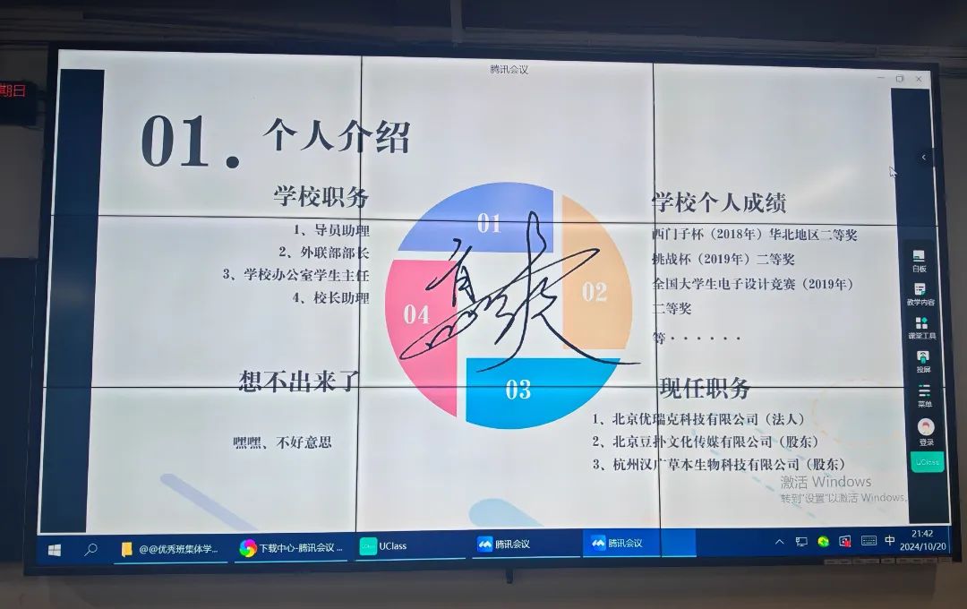 自主创业的自控1602高爽分享了个人经验。他着重强调了综合素质的培养,并指出在信息科学与技术领域,不仅需要专业的技术能力,还需要良好的沟通能力、团队协作能力和创新思维。高爽学长以自己参与的项目为例,讲述了团队协作在项目成功中的关键作用。他鼓励同学们积极参加各种社团活动和实践项目,锻炼自己的综合素质。他表示大学是一个丰富多彩的舞台,要充分利用各种机会,提升自己的综合能力,为未来的职业发展做好准备。