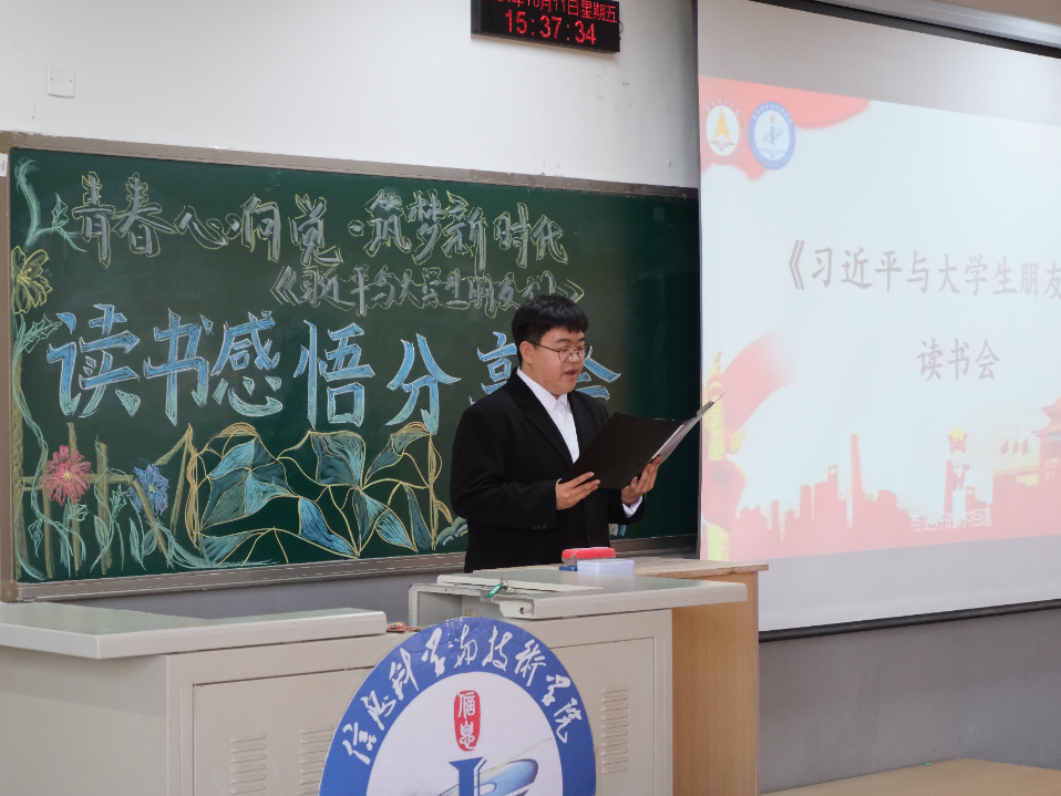 为促使青年深刻领悟习近平总书记对青年的关爱与期望,增进大学生之间的交流与思考,激发青年对国家发展的关注及参与热情。2024 10 11 日下午 3 点,信息科学与技术学院于 B401 成功举办了“青春心向党·筑梦新时代”——《习近平与大学生朋友们》读书感悟分享会。
