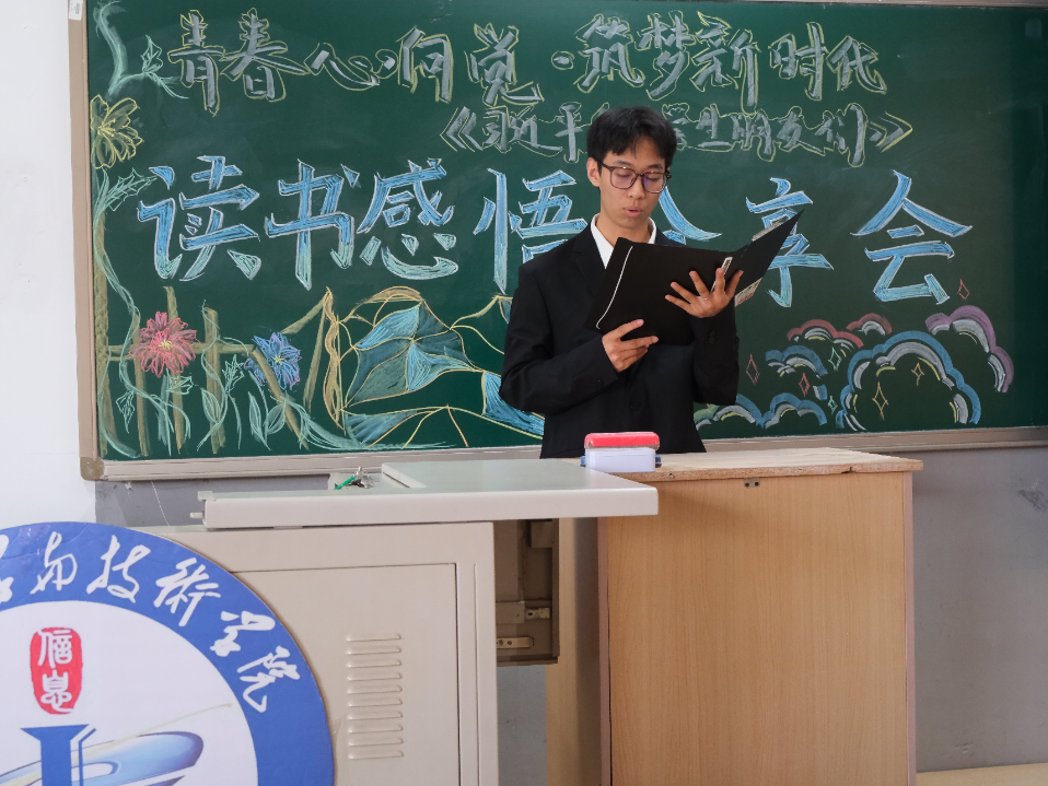 视频播放完毕后,郭子辰、奚慧艳、尹志明三位同学依次登台,分享他们的读书感悟。他们以饱满的热情和认真的态度,将从书中获取的启示、感悟以及对自身成长的思考,逐一呈现在大家面前。分享内容丰富多样,既有对书中具体事例的深入剖析,又有结合自身实际情况的深刻反思,引发了在场同学的强烈共鸣与深入思考。