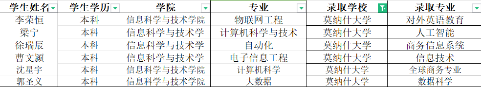 我院海外深造优秀学子录取情况展示