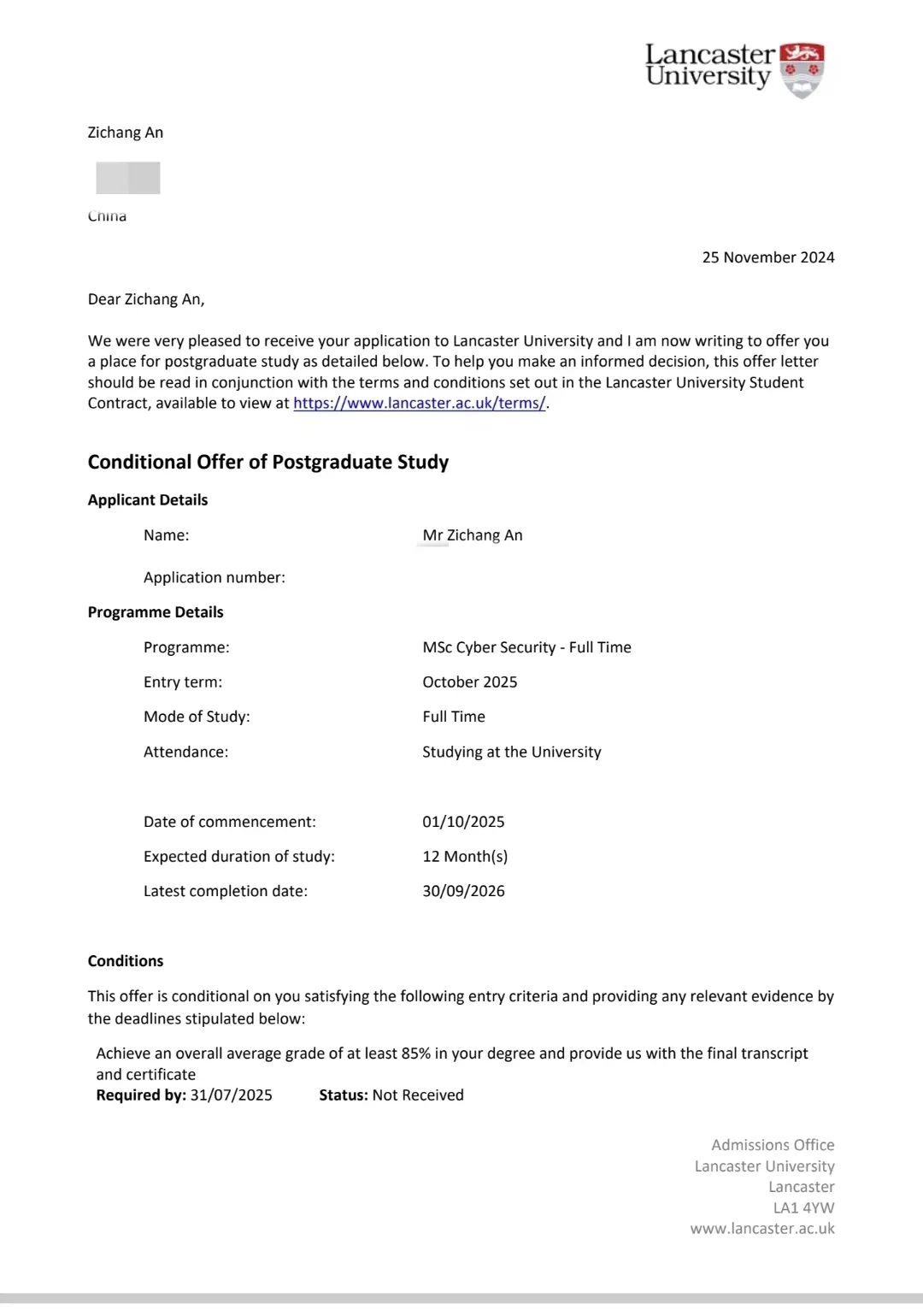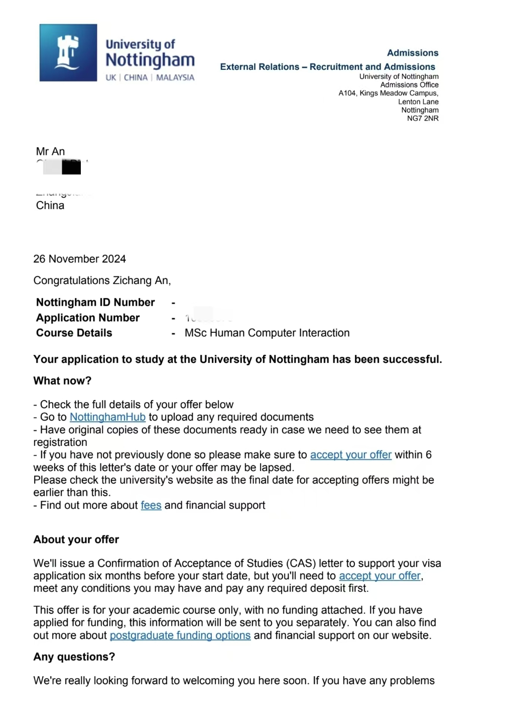 在这段青春璀璨、勤勉耕耘的岁月里,燕京理工学院计算机科学与技术专业2110班的安子昌,从曾经仰望星空的少年,成长为追逐星辰的追梦人,绽放出耀眼光芒。他秉持“笔耕不辍,书写华章”的坚韧精神,在大学期间刻苦钻研学习,功夫不负有心人,他成功获得诺丁汉大学(全球QS排名108名)、纽卡斯尔大学(QS排名129名)以及兰卡斯特大学(QS排名141名)海外高校的录取通知。