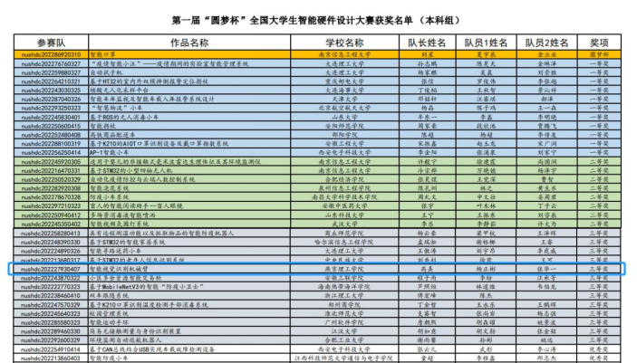 第一届“圆梦杯”全国大学生智能硬件设计大赛于12月23日正式落下帷幕,我校信息科学与技术学院学子高熹、张华一、杨正彬三位同学在指导老师(赵燕、张帝)悉心指导下制作的“智能视觉识别机械臂”作品斩获全国决赛三等奖的佳绩。