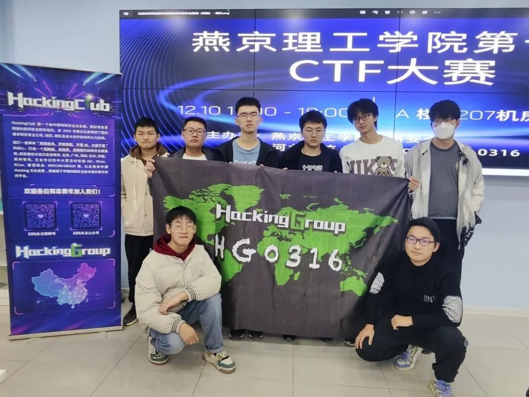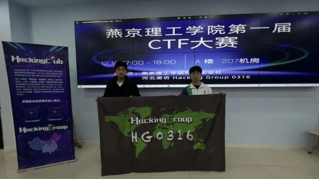 为广泛宣传网络安全知识,提高学生网络安全防护意识和技能,带动学生学习网络与信息安全知识的积极性,12月10日,燕京理工学院网络安全社和河北廊坊HackingGroup联动,在燕京理工学院A楼207机房,成功举办“燕京理工学院首届CTF大赛”线下比赛。本次线下比赛由燕京理工学院网络安全社负责。