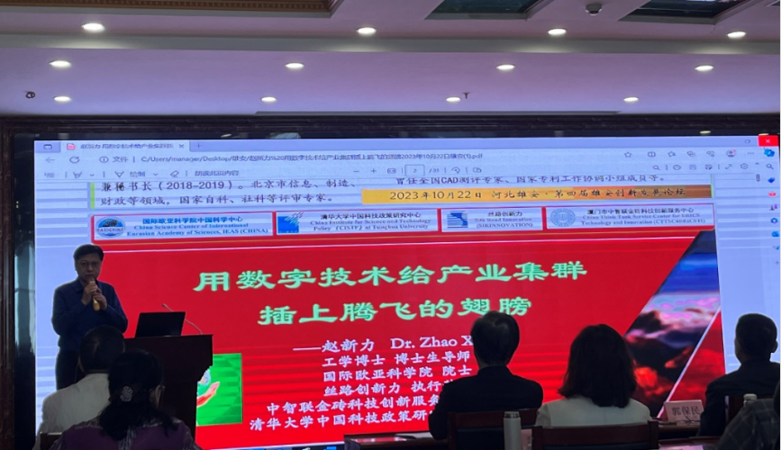 赵新力博士做《用数字技术给产业集群插上腾飞的翅膀》主旨报告