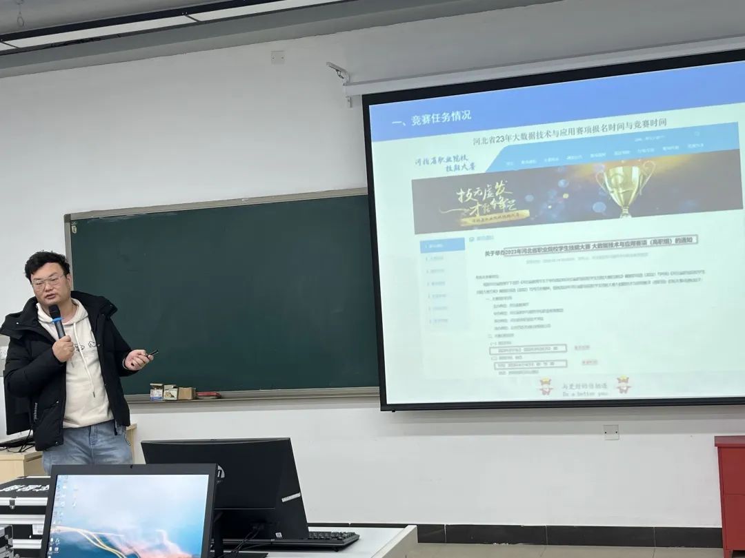 为了活跃我院计算机应用技术专业学生的第二课堂,以赛促学高质量推动学生专业技能的提高。近日,在信息实验教学中心由指导教师对备赛部分学生于信106实验室召开了全国职业院校技能大赛“大数据技术与应用”赛项培训会