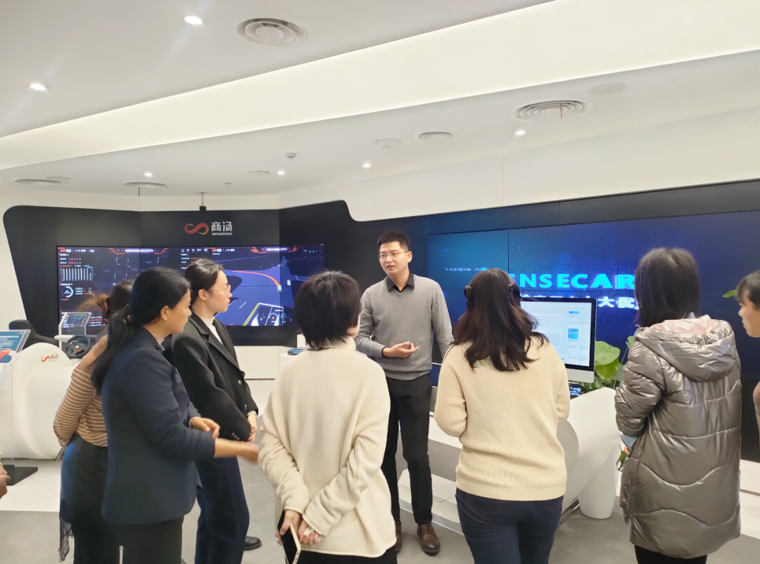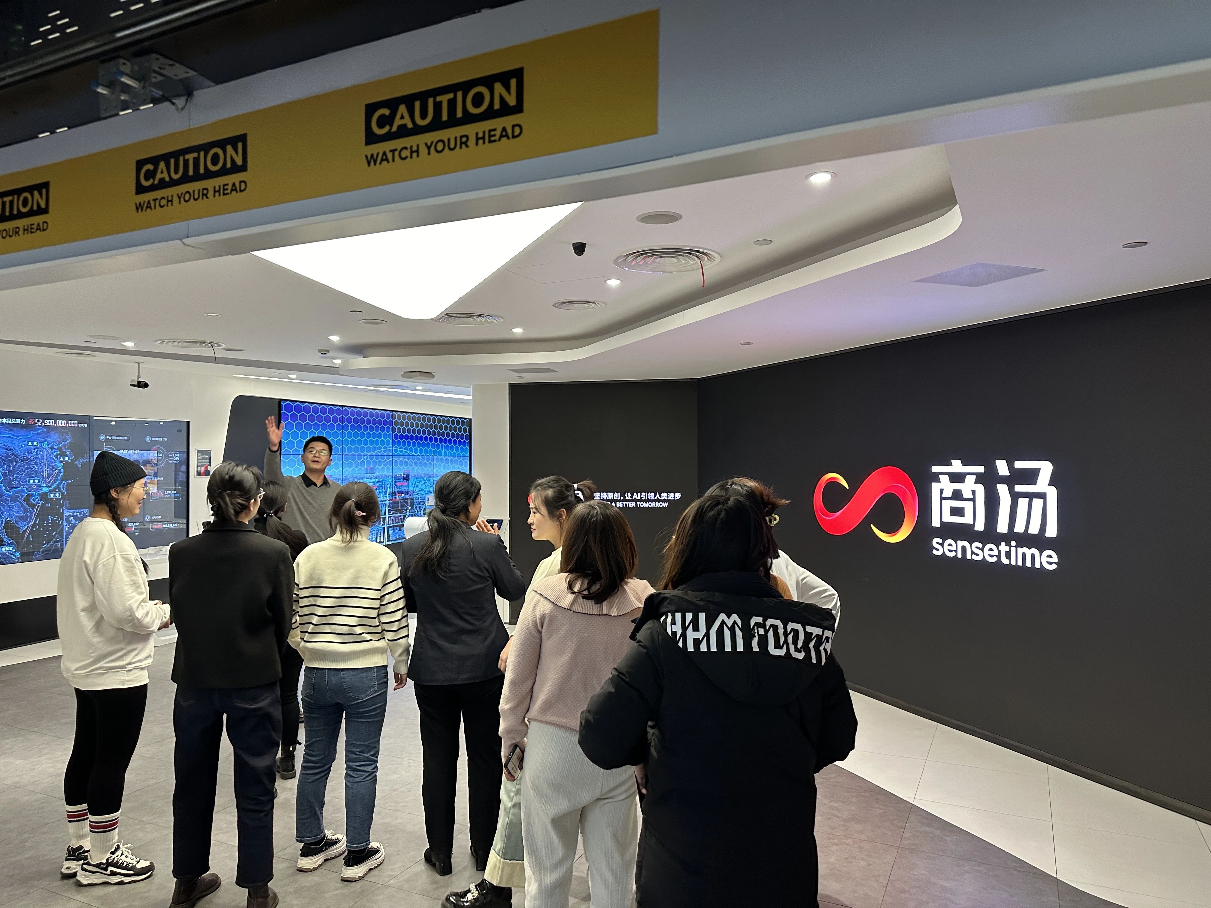 数据科学与大数据技术深刻改变着人们的生产、生活、学习乃至思维方式,同时也对高校计算机类专业人才培养提出了新的要求,为助力各校计算机类专业人才培养内涵创新,提升教师的数据科学思维与大数据技术运用能力,新E代数字智能信息技术产业学院联合北京市商汤科技开发有限公司针对计算机类专业教师的数据分析、数据可视化和数据挖掘进行赋能。2024年1月12日,燕京理工学院信息科学与技术学院云彩霞副院长带领燕京理工学院、成都文理学院、华南农业大学珠江学院计算机类专业部分骨干教师,走进商汤科技进行参观交流,学习人工智能的行业发展,体验人工智能的新技术。