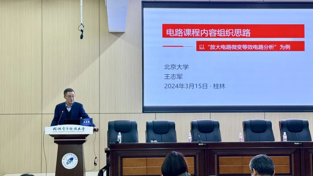 北京大学信息科学技术学院教授,学院基础实验教学研究所所长,教育部高等学校电子信息类专业教学指导委员会副主任委员,教育部产学合作协同育人专家组成员,全国大学生电子设计竞赛专家组责任专家、北京赛区专家组组长,北京市高等学校教学名师王志军教授做了题为“电路课程内容组织思路—以‘放大电路微变等效电路分析’为例”的报告。
