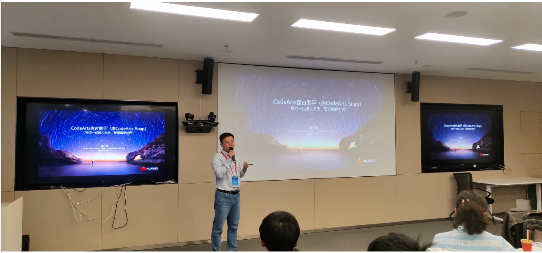 华为云软件分析Lab负责人、代码智能分析技术专家梁广泰老师,从五个方面分享了大模型时代的代码质量保障技术实践:行业趋势分析与展望、大模型时代的软件安全风险概览、基于大模型的漏洞智能分析技术、基于大模型的缺陷智能修复技术以及未来的工作思考与展望。同时,他介绍了CodeArts盘古助手(原CodeArts Snap),带领老师们领略“智能编程世界”。不仅提供了实践中的解决方案,为教育教学提供了宝贵的视角,为培养更多的软件开发人才奠定了基础。