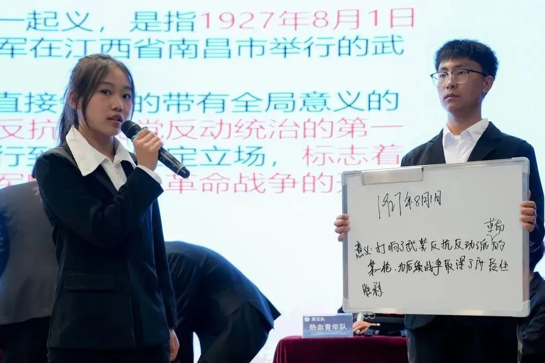 选答部分,题目难度增大,数量增多,但没有任何一个队伍放弃一道题目,紧张激烈的比赛也随之进入到了白热化阶段,选手面对任何难题都无所畏惧,迎难而上;随后进入视频概述题环节,观看视频,回答问题,每个队伍的题板再次震撼到观众,展现出参赛选手超强的反应能力能力,更让观众意识到学习党史的重要性。