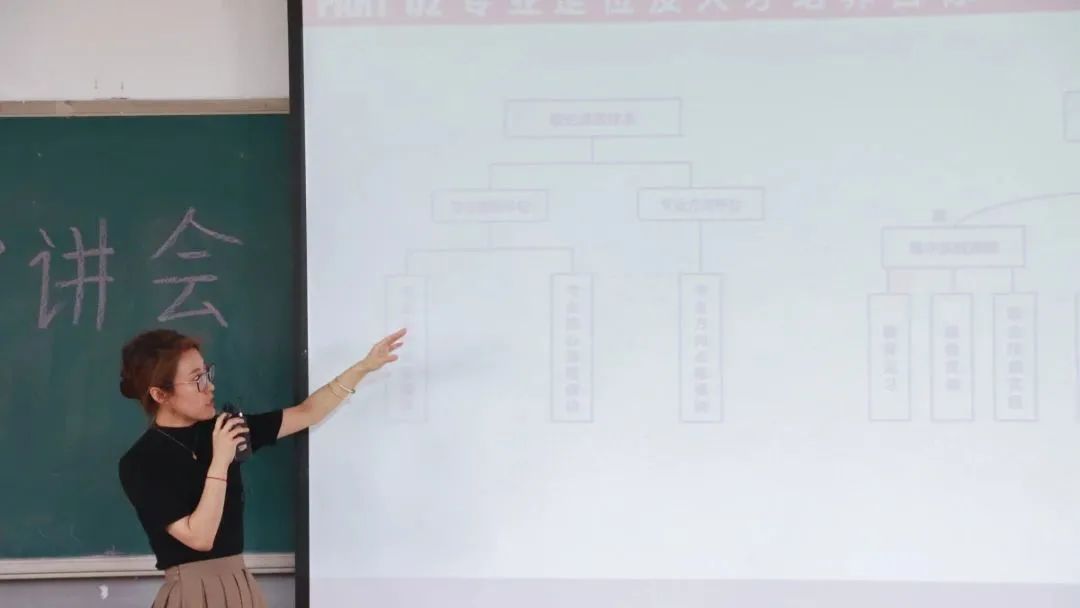 工商管理专业的赵娜老师讲解专业培养目标、师生获奖状况、校企合作成果及辅修本专业的课程安排等。
