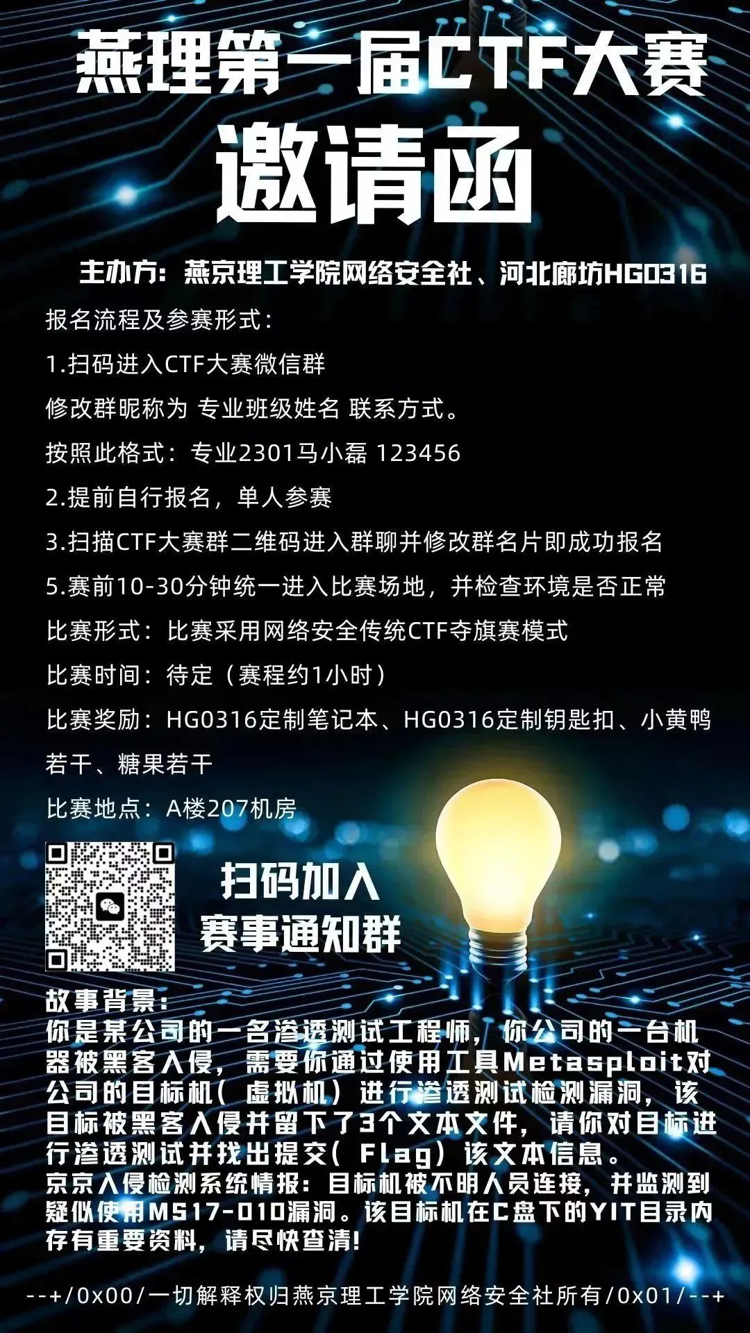 网络安全社&河北廊坊HG0316举办燕理第一届CTF大赛