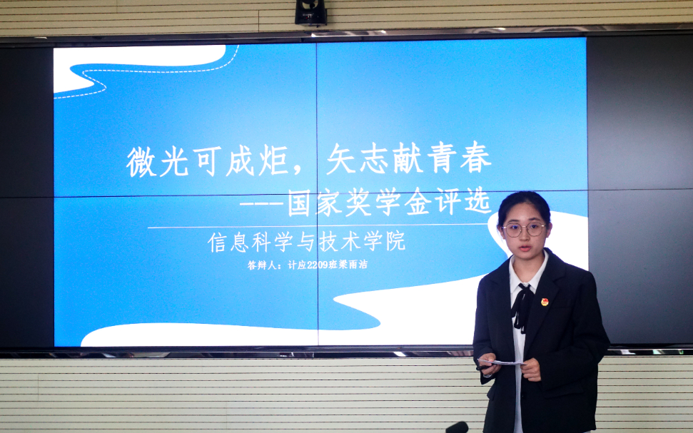依据本次国家奖学金的评选流程与要求,经由学生自主申请、班级推选、学院审查等环节,确定了10位候选人。这些候选人以 PPT 汇报演讲的方式,从思想道德、学业成绩、学生工作、社会实践、科技竞赛以及创新能力等多个角度,对自己在校期间的学习历程与成长轨迹进行了全面阐述。
