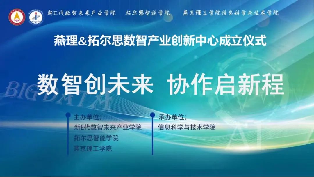 3月5日,在新E代数智未来产业学院的支持下,由燕京理工学院信息科学与技术学院和拓尔思信息技术股份有限公司联合建设的燕理&拓尔思数智产业创新中心的揭牌仪式在报告厅举行。