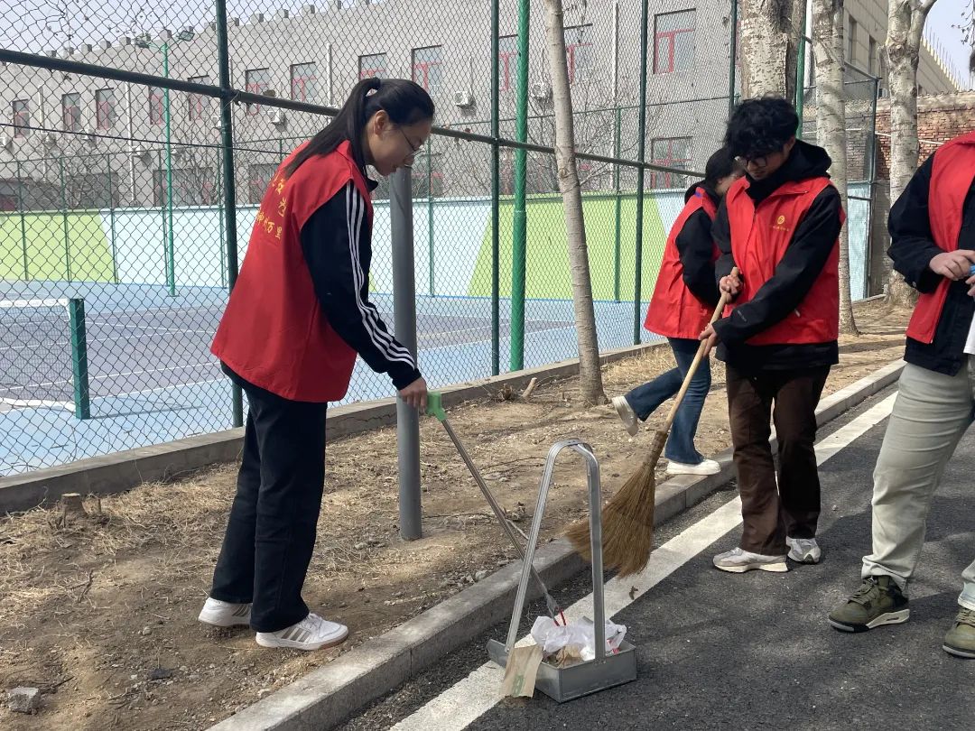 3月16日下午,阳光明媚,春风和煦。志愿者们在学校三餐门口整齐集合后,每个部门都有序地分配劳动工具,志愿者们在拿到必要的清扫工具后,拿着清扫工具,对地上的散落的烟头、食品垃圾袋、纸张进行打扫,并将垃圾分类到相应的垃圾桶。在燕京理工学院的校园里,一群身着红色志愿者服装的同学们忙碌地穿梭在国际宿舍之间,进行着紧张而有序的清扫工作。