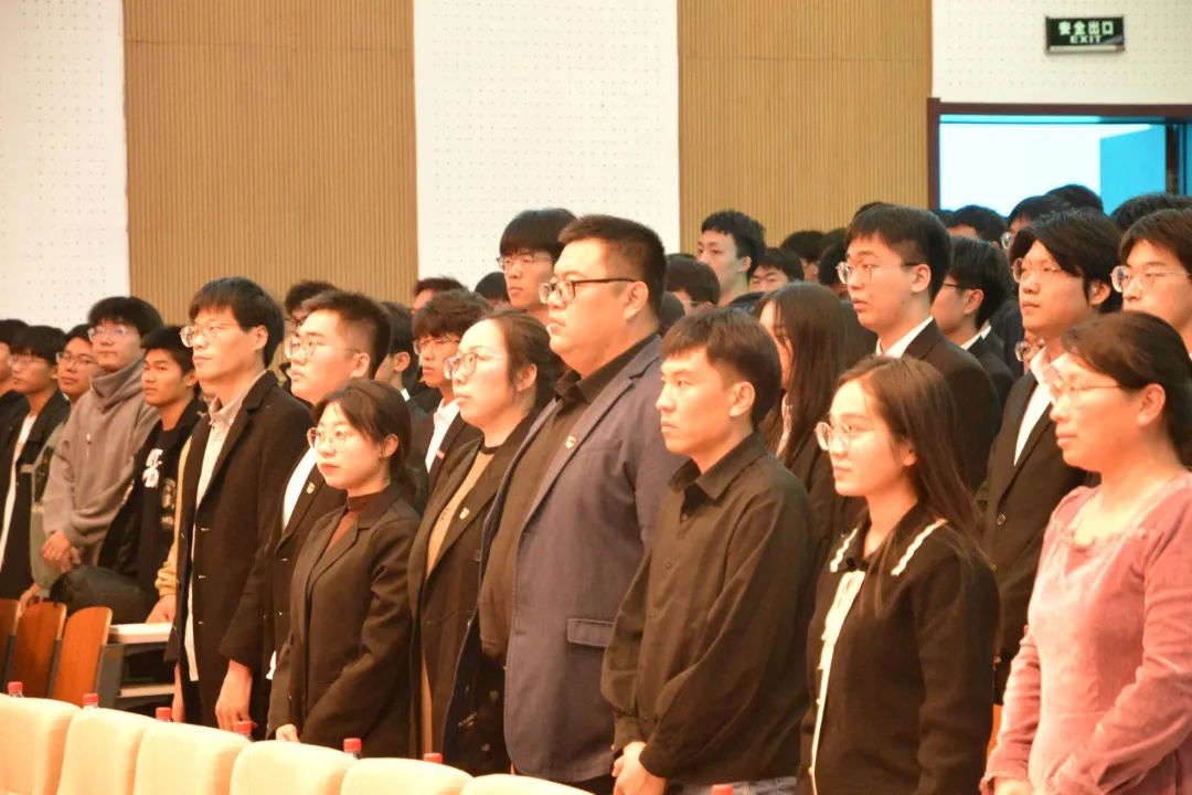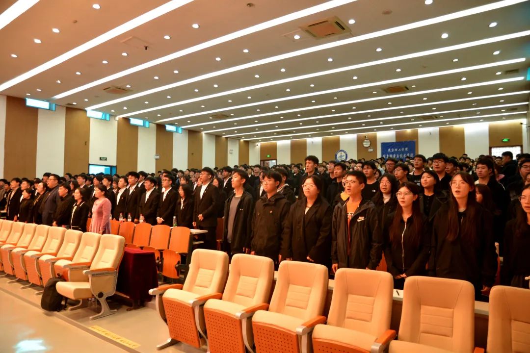 燕京理工学院信息科学与技术学院参会全体师生起立,奏唱国歌。