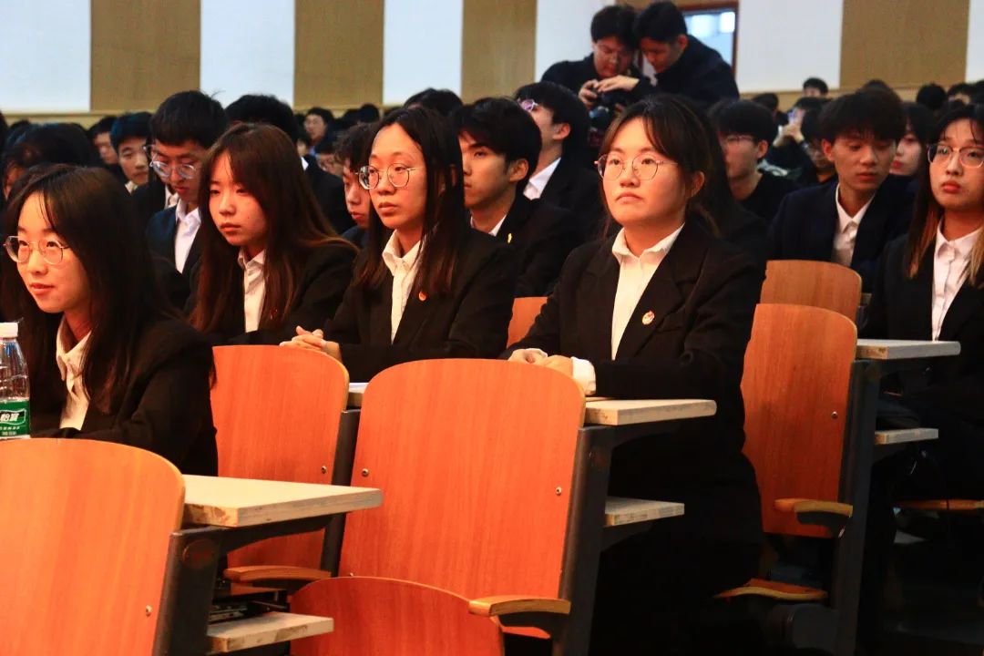 学生干部代表团总支学生第一副书记刘博韬发言,“玉不琢,不成器”,作为学生干部,要提升业务熟练度、综合素质和协调能力,争当组织中积极的建设者和正能量调节剂。在今后的每一次大大小小的活动中,热爱工作,具备责任感、良好的沟通能力和应变能力,提升组织协调能力,注重学习和个人成长,学会时常反思自己在工作中的不足并及时改正、进步。