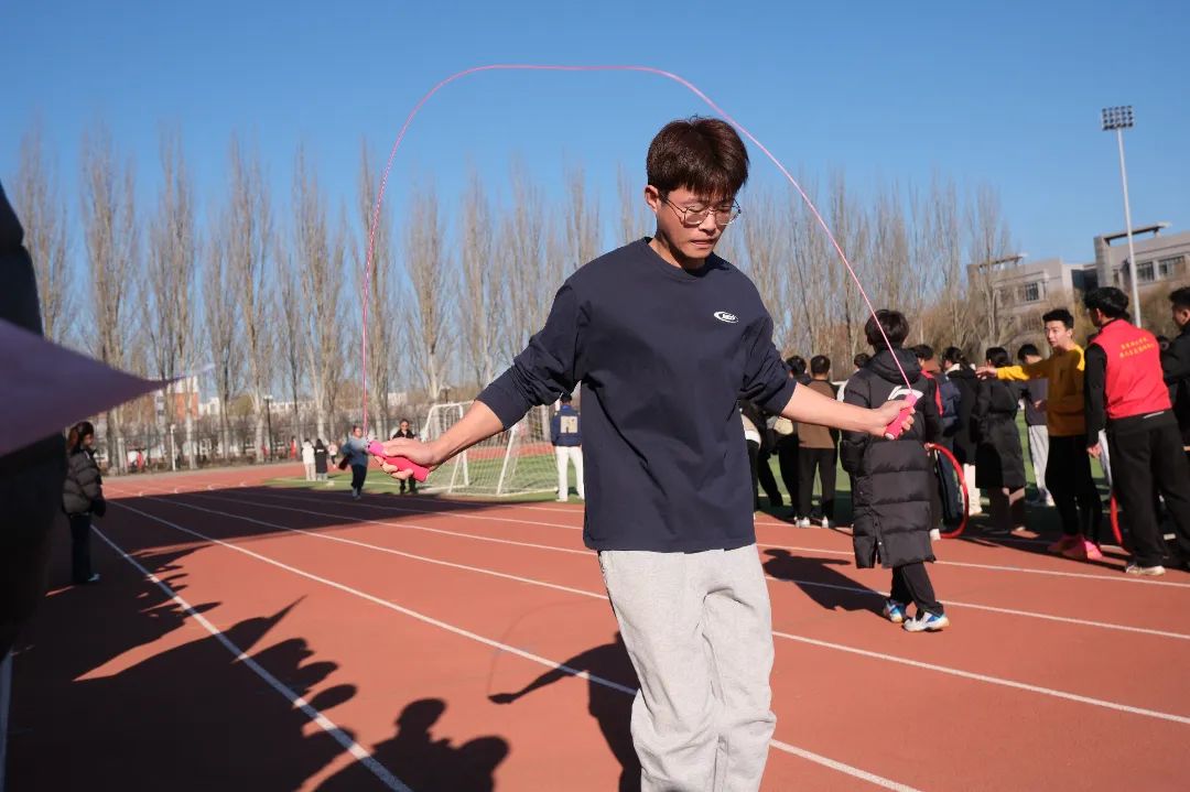 本次比赛采用“男女混合接力跑”的形式进行,由教职工队伍与各学院组成的学生队伍代表参赛。比赛起点设于田径场,接力路线蜿蜒曲折,途经体育馆、图书馆、学术报告厅、艺术楼 M 楼、C 楼、理科馆、风车和篮球场等标志性建筑,横跨校园大半区域。同时,此次比赛规则别出心裁,在每棒队员接力前,需完成转呼啦圈或跳绳的规定数量任务,这不仅考验着参赛选手的体能与速度,更对其技巧与耐力提出了挑战。