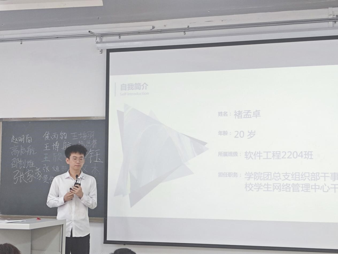 因为有趣而选择加入团总支,因为热爱而选择坚守团总支。时间就像流水,仿佛我们昨日才刚刚加入团总支,但新一轮的挑战已经开始。2023年6月12日上午信息科学与技术学院第十八届团总支部长竞选大会在m105成功开展。参加本次竞选活动的人员有团总支书记安广斌老师、团总支副书记霍泽林、费春哲、各部门部长以及参选成员28名,本次大会由团总支副书记霍泽林主持。