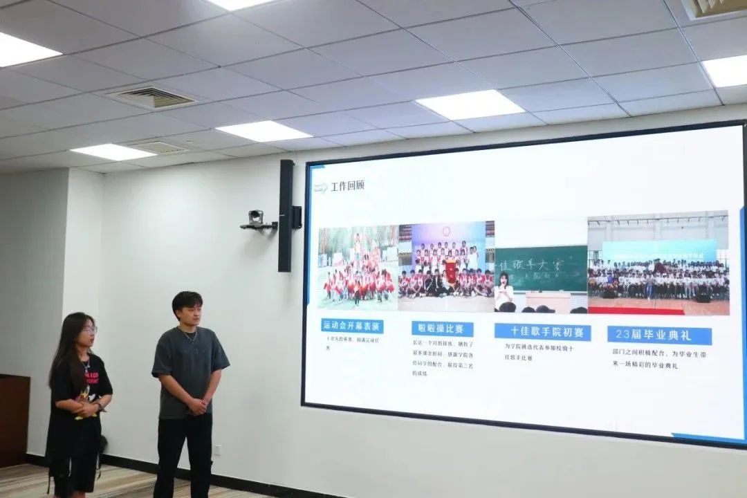 本次部长述职大会由自我述职和公开答辩两部分组成。各个成员准备充分、精神饱满,利用五分钟时间详细而有条理地从个人事迹、工作经历、未来展望等多个方面进行阐述。张建飞老师结合部长成员工作和部门实际进行现场提问,成员们从容应对、语言流畅、表达清晰,精彩的回答充分展现了他们的信心与能力。