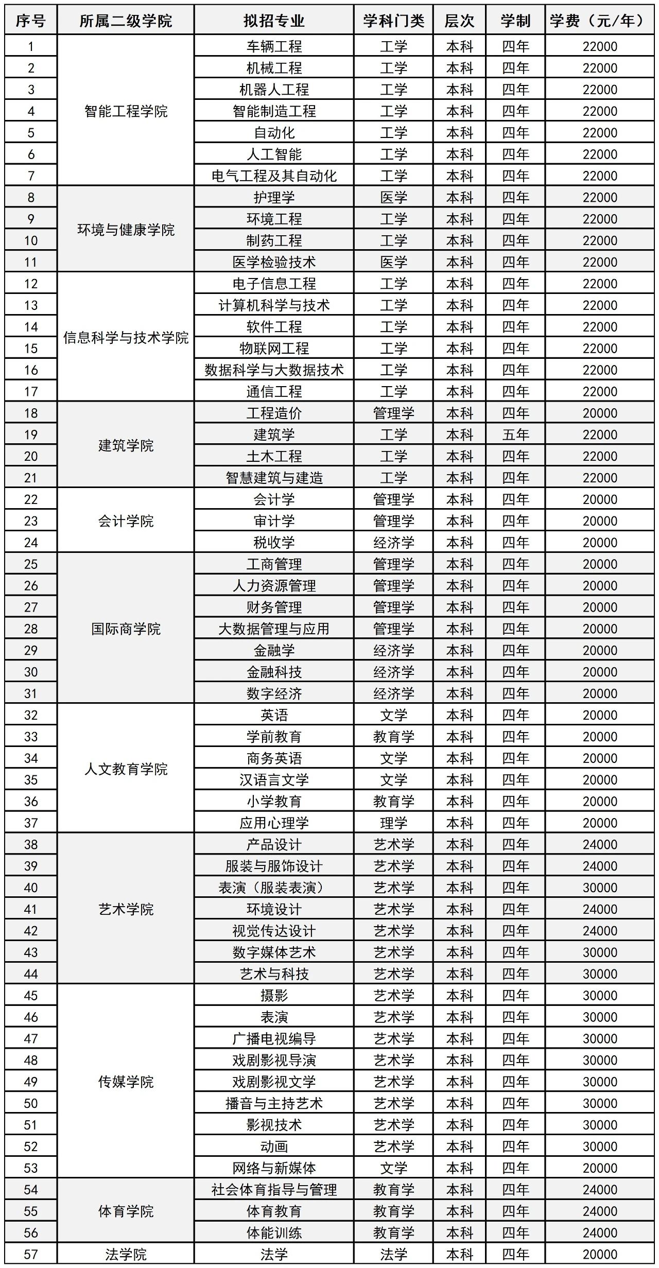 2.学费标准以省发改委规定为准。