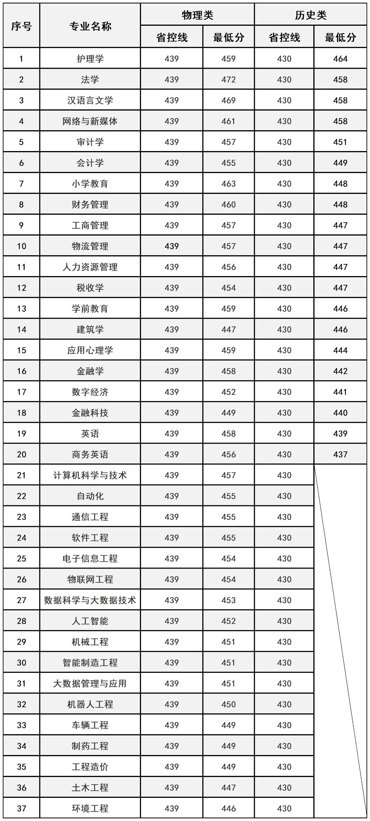 普通类分数线