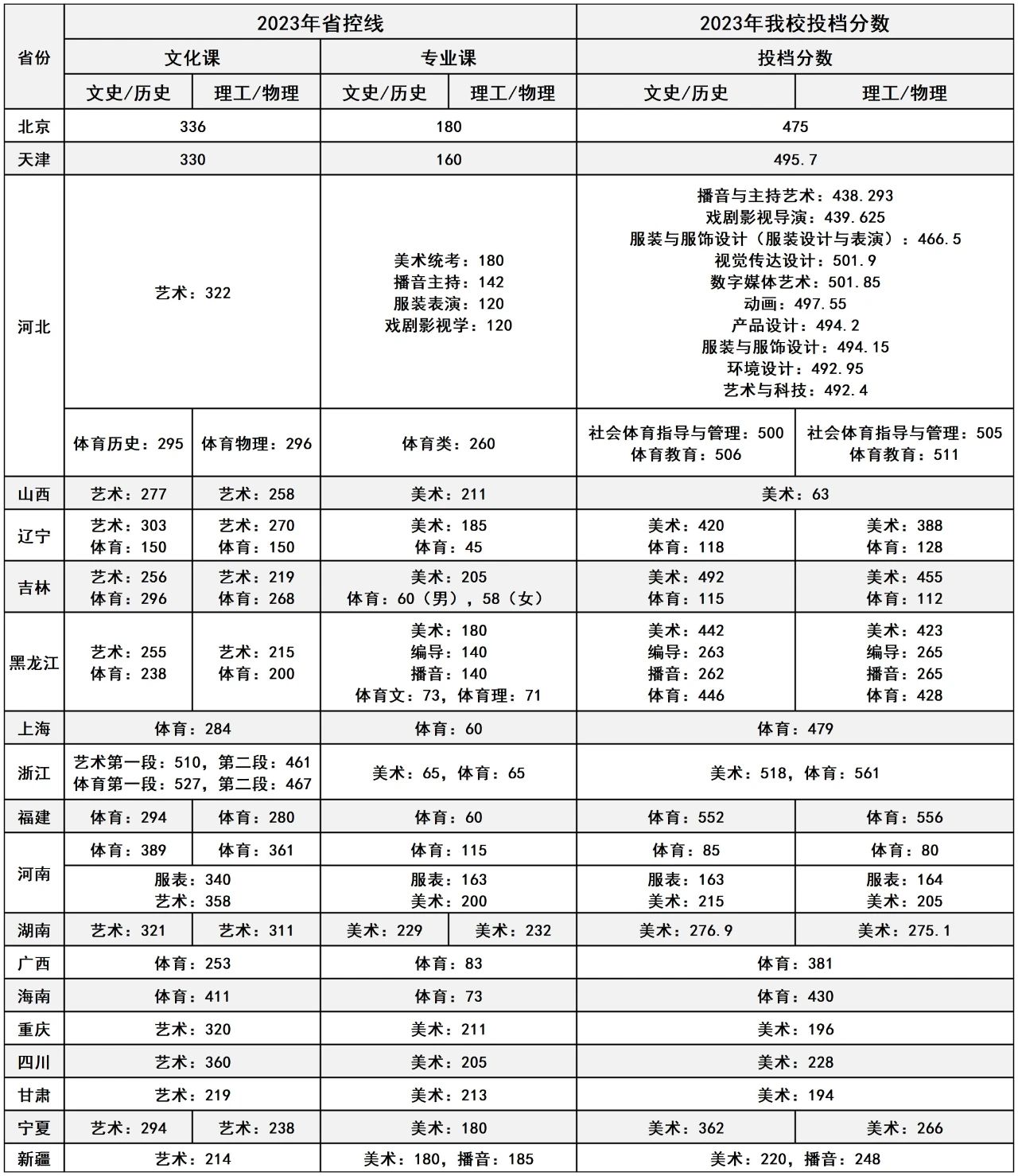 艺术、体育类分数线