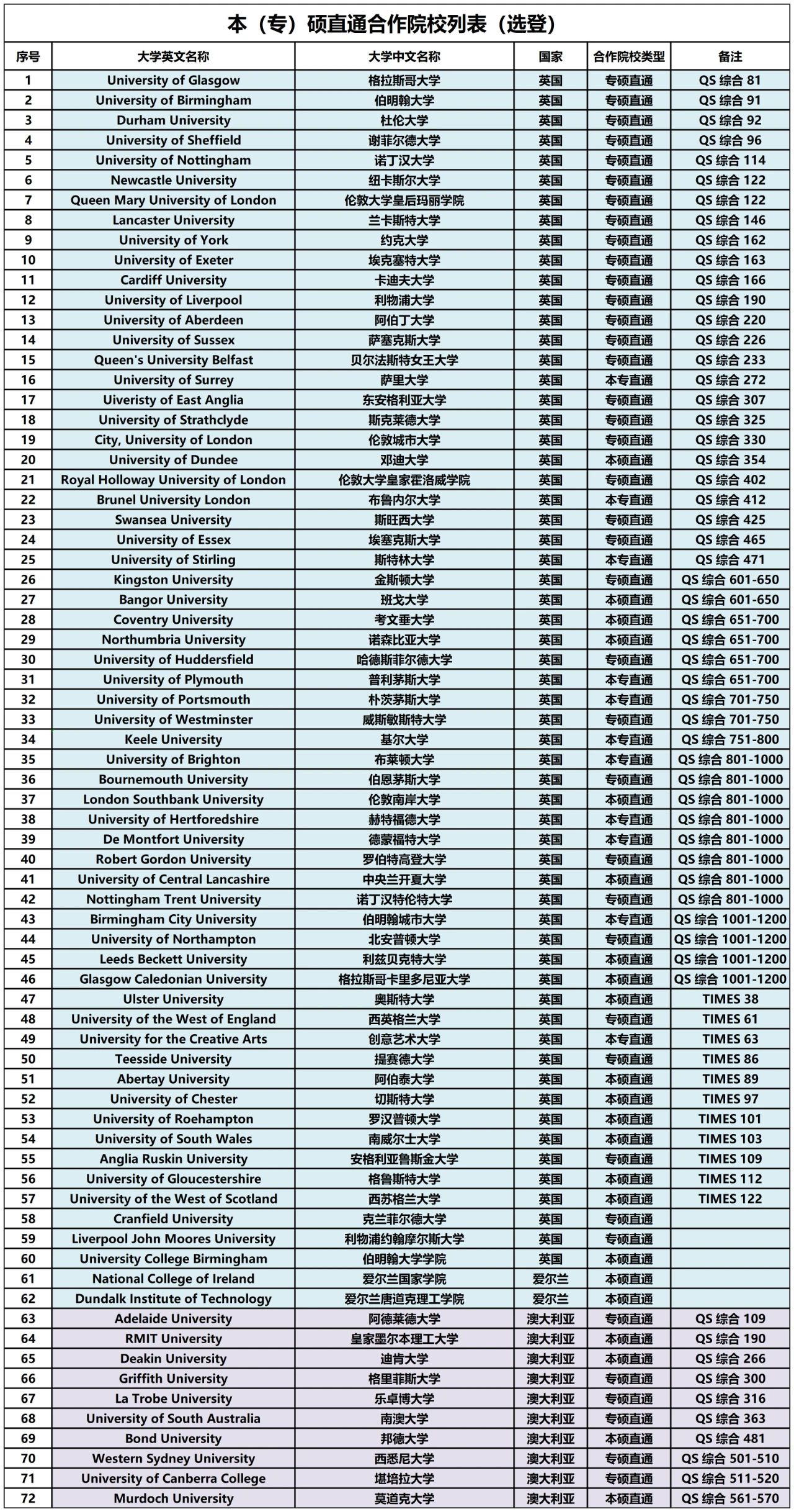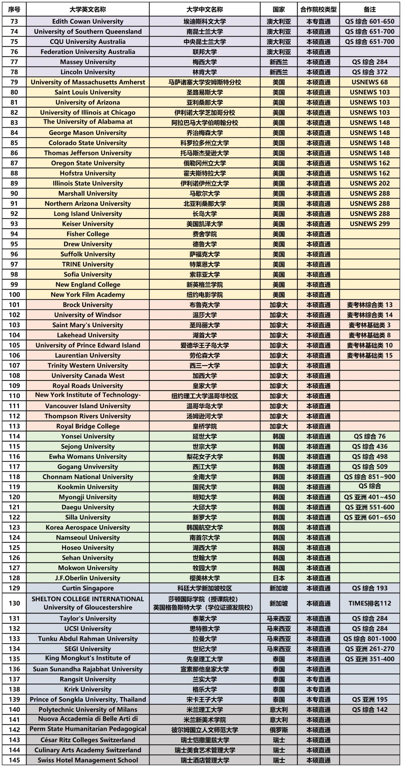 合作院校名单