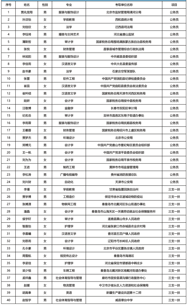 燕京理工学院毕业生考取公务员、三支一扶名单(选登)