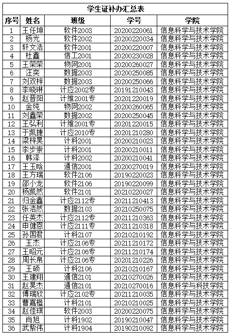 本学期共有55名学生(具体人员名单见下表)学生证遗失,经辅导员审核、学院领导同意,申请补办学生证,自公示之日起,原学生证作废,公示期2022年10月22日-10月27日,如有异议可向学院反映,电话:0316-3380160。