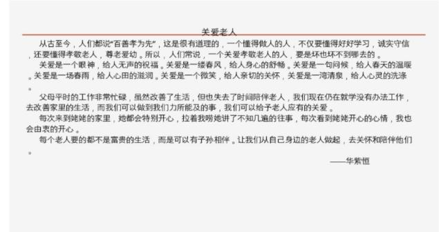 为大力弘扬中华民族敬老、爱老、助老的传统美德,红衫志愿者协会积极参与到“寸草心”爱老敬老活动中,活动以“关爱老人,从我做起”为主题,鼓励学生做一件小事感恩身边的老人。
