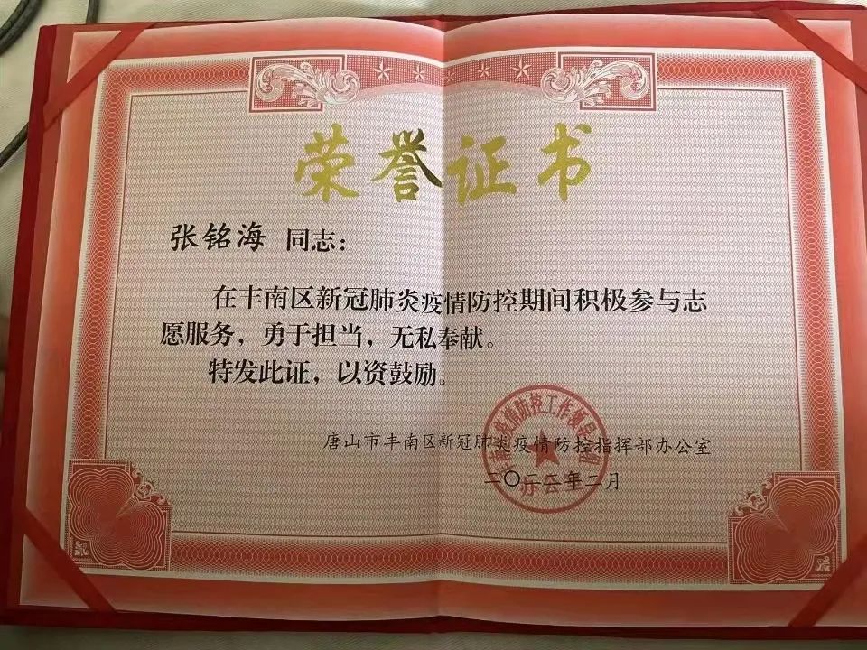 计应2108班张铭海同学在丰南区新冠肺炎疫情防控期间积极参与志愿服务,勇于担当,无私奉献。