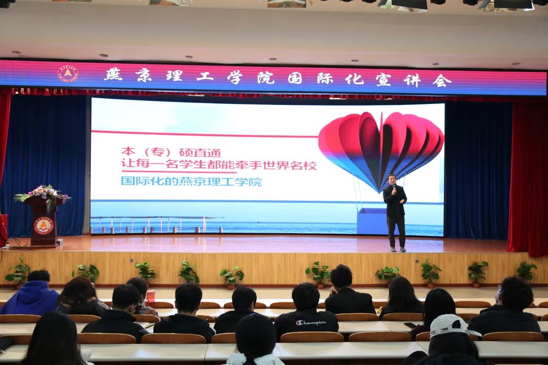 大学是让人重生的地方,只有自己才能成就自己。吴院长举了燕理往届优秀毕业生出国的成功案例。他们的经历表明,出国留学也是一条未尝不可的路。眼界决定世界,格局决定胜局。燕理与全世界多所知名高校合作,定位高端化国际化,培养具有国际视野的人才。