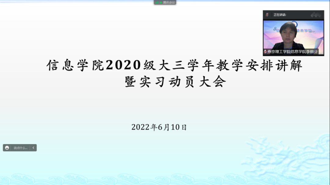 为推动信息科学与技术学院2020级专科教学及实习活动的开展,6月10日我院召开线上2020级专科大三学年教学安排讲解暨实习动员大会。信息科学与技术学院院长李丽芬、党总支书记朱雷、副院长陈炜、2020级辅导员以及全体2020级专科学生参加本次会议。