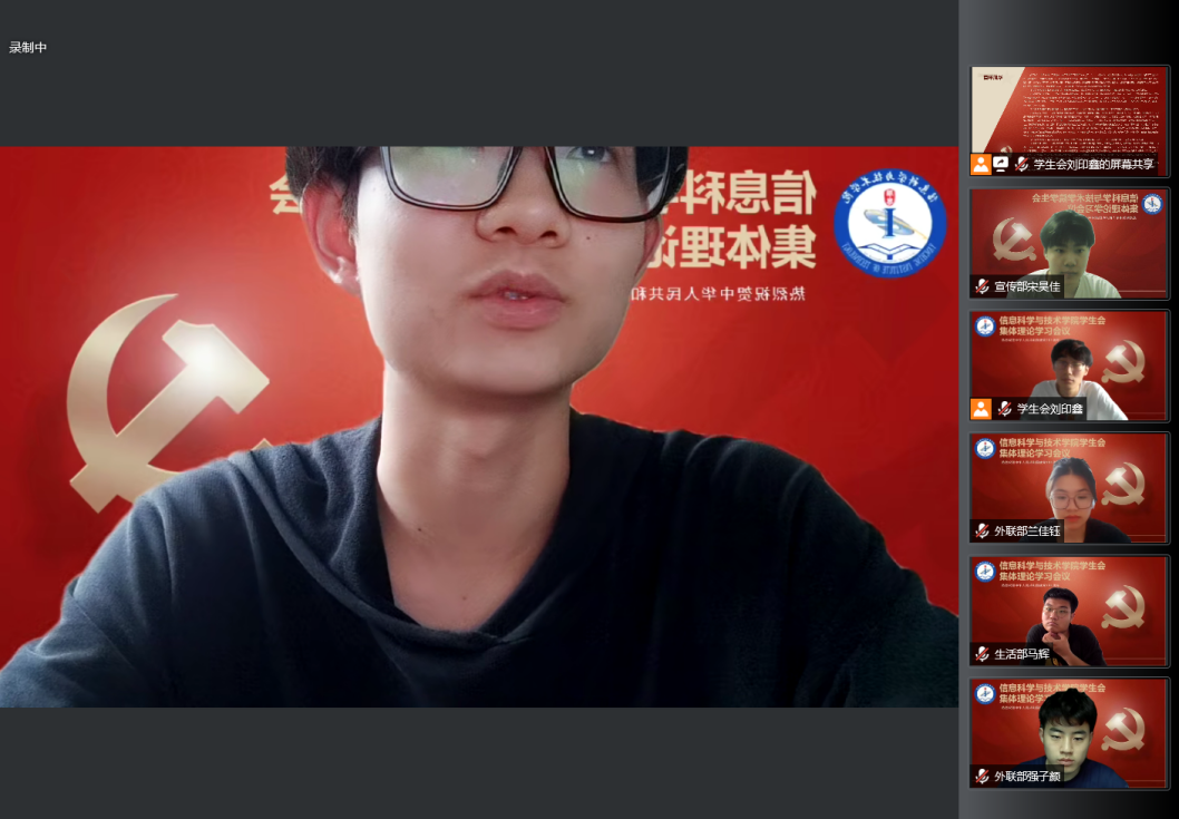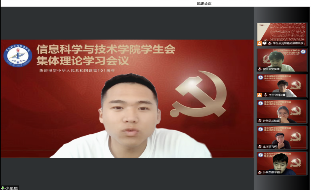 为迎接党的二十大召开、庆祝中国共产党成立101周年,贯彻落实习近平总书记关于青年工作的重要思想,引导青年学生深刻感悟新时代党和国家事业发展的伟大成就和党领导中国青年运动的光辉历程,燕京理工学院信息科学与技术学院学生会集体理论学习会议于2022年7月5日举行,由学生会主席张紫琪主持。